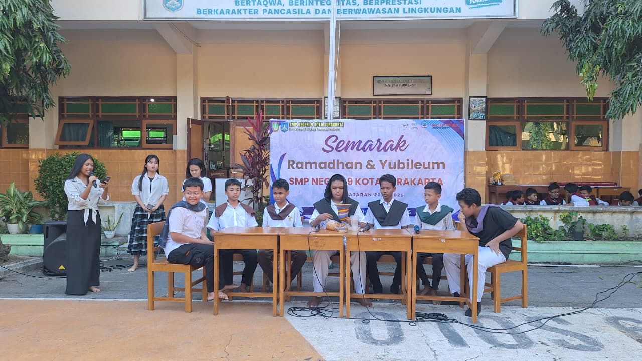 SMP Negeri 9 Kota Surakarta sukses menggelar Semarak Ramadan dan Semarak Yubileum tahun 2026 dengan penuh semangat dan kebersamaan. Kegiatan ini berlangsung selama tiga hari yakni pada Rabu-Jumat (11-13/3/2026) di lingkungan sekolah. Semarak Ramadan menjadi wadah bagi murid beragama Islam untuk mengasah kemampuan dan pengetahuannya dalam Agama Islam melalui berbagai lomba.