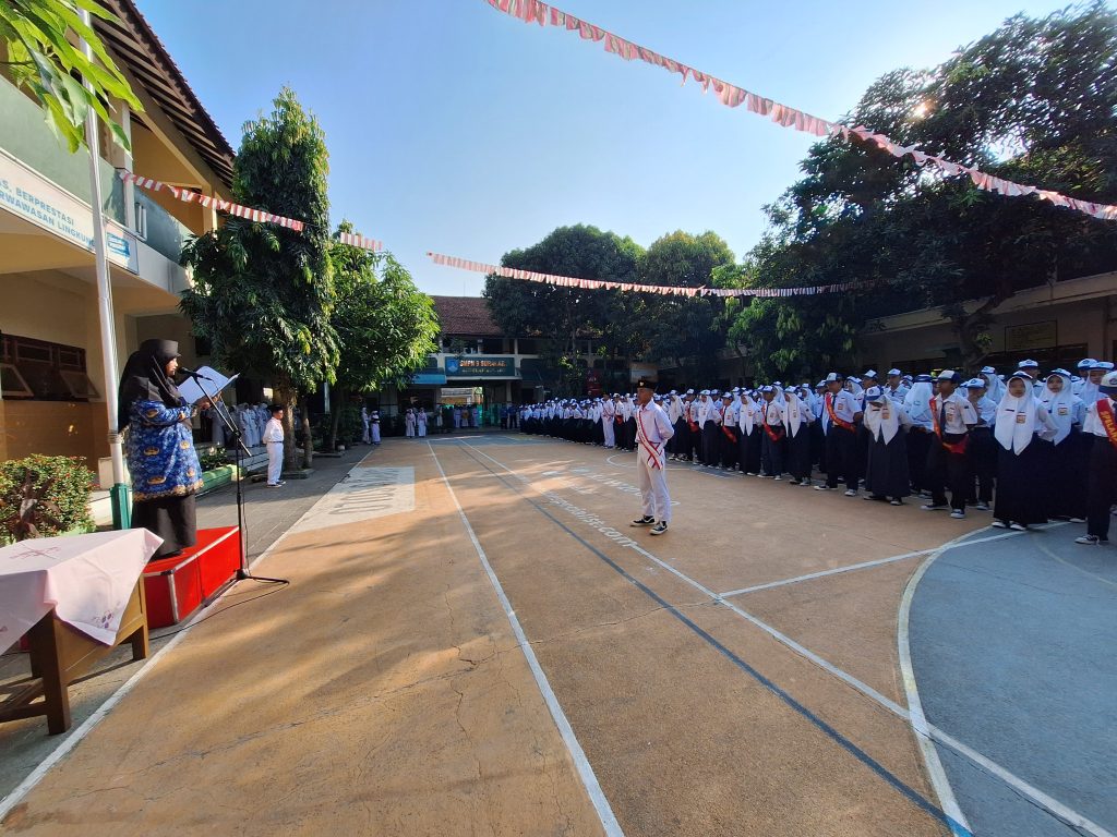SMP Negeri 9 Kota Surakarta menyelenggarakan upacara pengibaran bendera dalam rangka memperingati Hari Ulang Tahun Republik Indonesia (HUT RI) yang ke-80 pada Minggu, (17/8/2025) di halaman dan diikuti oleh seluruh warga sekolah. Petugas upacara adalah kolaborasi anggota OSIS dan Pasukan Khusus (Pasus) dan bertugas sebagai pembina upacara adalah Wakil Kepala Sekolang Bidang Humas, Sri Hastuti, S.H. Peserta didik mengikuti upacara dengan mengenakan seragam OSIS lengkap, sedangkan para guru dan tenaga kependidikan berseragam Korpri. Berbeda dengan upacara hari Senin pada umumnya, ada petugas tambahan dalam upacara pada Hari Kemerdekaan yaitu dengan adanya pasukan pengibar bendera yang terdiri dari 24 peserta didik dengan 1 komandan pleton yaitu Raditya Putra Bremana (IX A). Pembina upacara menyerahkan bendera merah putih pada petugas pembawa baki, Khandra Lakeisha (IX E). Peserta didik yang bertugas sebagai pembawa bendera adalah Edgina (IX I), pembentang bendera adalah Samgar Seraf L. M (VIII C) dan pengerek bendera yaitu Samuel Daru Yunanto (IX B). Tim paduan suara menyanyikan lagu Indonesia Raya mengiringi pengibaran bendera. Pada penyampaian amanat, pembina upacara membacakan pidato HUT RI ke-80 yang mengusung tema “Bersatu Berdaulat, Rakyat Sejahtera Indonesia Maju“. Pesan dari tema tersebut adalah bagaimana keberagaman yang ada di Indonesia dapat menjadi penggerak menuju bangsa yang berdaulat, sejahtera dan maju bersama, sebagai cerminan perjalanan Indonesia yang mana melalui kekuatan persatuan, diwujudkan dalam kesejahteraan rakyat untuk menuju masa depan yang maju. Sebelum upacara berakhir, seluruh peserta menyanyikan lagu Hari Kemerdekaan bersama-sama dipandu oleh dirigen. Seluruh peserta bernyanyi dengan kompak dan penuh semangat. Setelah upacara berakhir, panitia peringatan HUT RI ke-80 SMP Negeri 9 Kota Surakarta mengumumkan para pemenang lomba-lomba yang telah diselenggarakan pada hari Rabu dan Kamis (13-14/8/2025). Perwakilan pemenang dari setiap lomba diminta untuk maju ke depan dan menerima penghargaan dari sekolah. Melalui kegiatan perlombaan tersebut peserta didik diharapkan dapat belajar tentang kerja sama, komunikasi dan kekompakan. Dirgahayu Republik Indonesia 17 Agustus 1945 – 17 Agustus 2025 “Bersatu Berdaulat, Rakyat Sejahtera Indonesia Maju” (Awp)