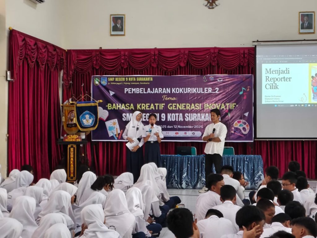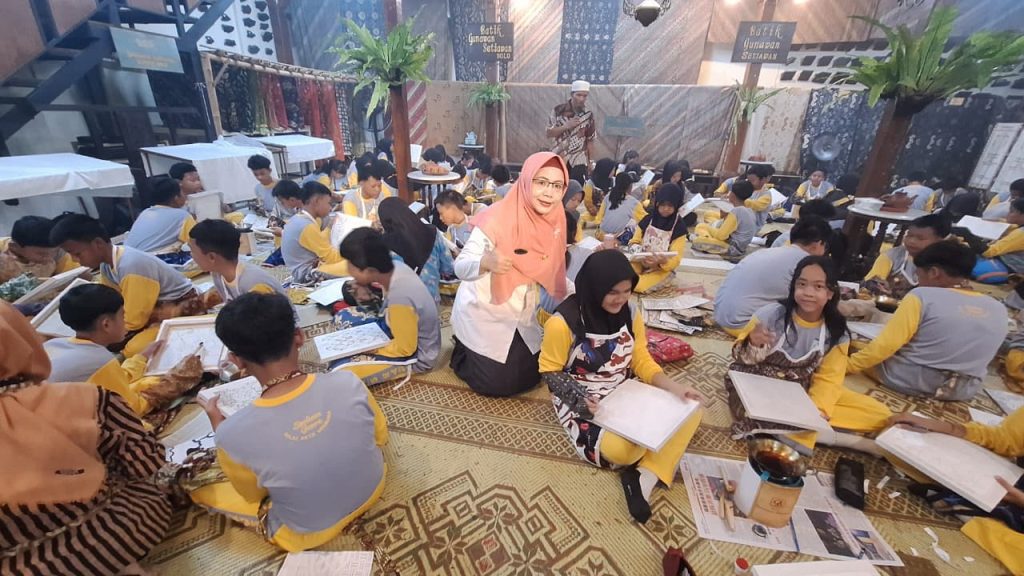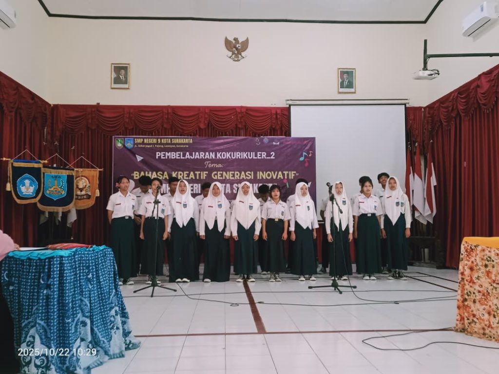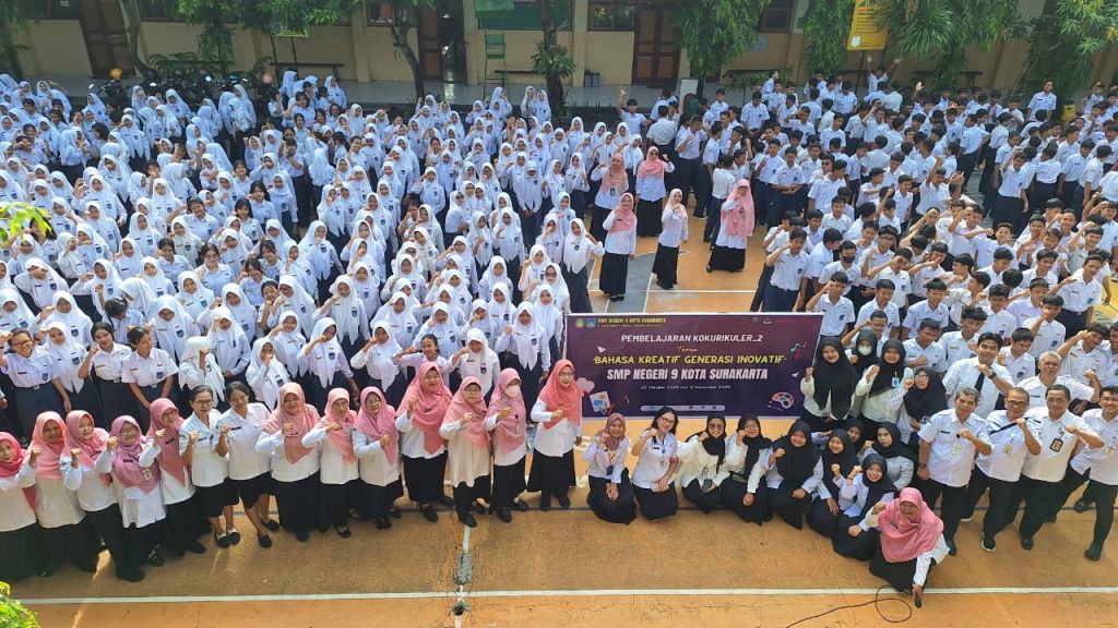 SMP Negeri 9 Kota Surakarta memamerkan ratusan karya batik Sekar Jagad dalam Gelar Karya Kokurikuler Tema 1 yang mengusung tema “Sekolahku Dahsyat dalam Pesona Batik Sekar Jagad” di aula dan kelas-kelas pada Selasa (18/11/2025). Batik-batik tersebut merupakan hasil karya para murid yang sebelumnya telah mengikuti workshop membuat batik dengan bekerja sama dengan Batik Gunawan Setiawan Kampung Kauman Kota Surakarta. Acara gelar karya ini merupakan acara puncak kegiatan kokurikuler yang berfokus pada branding batik Sekar Jagad SMP Negeri 9 Kota Surakarta. Kepala SMP Negeri 9 Kota Surakarta, Siti Latifah, S.Pd., M.Pd. memberikan sambutan dalam pembukaan gelar karya batik Sekar Jagad, Selasa (18/11/2025). Acara dimulai dengan acara seremonial, sambutan dari ketua tim dan yang terakhir sambuatan dari Kepala SMP Negeri 9 Kota Surakarta, Siti Latifah, S.Pd., M.Pd. Setelah acara gelar karya dibuka, grup angklung kelas VIII menampilkan lagu persembahan “Hymne Guru”. Gelar karya dilaksanakan di aula untuk kelas IX dan di kelas masing-masing untuk kelas VII dan VIII. Setiap kelas diberikan kesempatan untuk berkreasi untuk membuat stan display karya yang sederhana namun tetap kreatif. Batik-batik yang sudah mereka buat kemarin dan sudah jadi, dipajang di stan masing-masing. Kreativitas para murid tampak dalam karya batik Sekar Jagad yang ditampilan setiap stan dengan pola batik yang khas dan penuh warna. Selain memerkan karya batik buatan mereka, murid-murid juga diminta untuk memberikan apresiasi pada setiap display, baik yang dipamerkan di aula maupun kelas-kelas. Setiap anak menuliskan komentar dalam selembar kertas setelah melihat display-display tersebut. Kegiatan ini melatih mereka untuk dapat berpikir kritis dan menumbuhkan sikap empati serta menghargai. “Membuat batik ternyata melatih karakter-karakter baik, kalian belajar sabar, hati-hati dan teliti mengingat proses dalam menghasilkan karya batik tidaklah mudah,” ungkap Sri Handayani, S.Pd., selaku ketua Tim Kokurikuler 1. Melalui kegiatan ini diharapkan para murid dapat ikut mengenalkan batik Sekar Jagad ke lingkup yang lebih luas dan menjadikannya berhubungan erat dengan SMP Negeri 9 Kota Surakarta. (Awp)