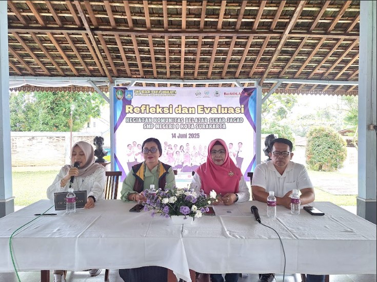 Komunitas Belajar SekarJagad SMP Negeri 9 Kota Surakarta kembali menggelar kegiatan berbagi praktik baik pada Senin-Selasa (8-9/12/2025) di aula sekolah yang diikuti seluruh guru dan tenaga kependidikan. Pada agenda rutin ini terdapat dua narasumber guru yang membagikan praktik implementasi pengajaran di kelas, yaitu guru mapel Bahasa Inggris, Anggraini W.P., S.Pd. dan guru mapel Bahasa Indonesia, Yuni Anjani, S.Pd. Sesi pertama digelar pada Senin dengan Anggraini sebagai narasumber yang memapaparkan praktik baik bertajuk HYPE (Happy Young People Exploring English) atau dalam Bahasa Indonesia berarti anak-anak muda yang gemar belajar Bahasa Inggris. Praktik pembelajaran tersebut berfokus pada mengoptimalkan productive skills Bahasa Inggris dari peserta didik dan kegunaannya dalam kehidupan sehari-hari. Selain itu media pembelajaran yang digunakan pun beragam, mulai dari buku digital, memanfaatkan kemitraan dengan guru mapel lain, hingga menggunakan aplikasi-aplikasi game dan bahan ajar yang sesuai dengan perkembangan zaman dan kebutuhan peserta didik, seperti contohnya saat murid diminta untuk mempraktikkan langkah-langkah aktivitas sehari-hari melalui teks prosedur. Pada materi lain, para murid diminta untuk melakukan pengumpulan data sederhana guna membuat teks laporan dengan memanfaatkan sumber daya di sekitar seperti layaknya ilmuwan. Data yang didapat kemudian dipresentasikan melalui peta konsep yang dibuat sesuai kreativitas para murid. Selain mengasah kemampuan berbahasa Inggris, kegiatan pembelajaran ini juga memperkuat kerjasama dan pola berpikir kritis. Kombel sesi kedua digelar pada Selasa, (9/12/2025) dengan narasumber guru Bahasa Indonesia, Yuni Anjani, S.Pd. yang menyampaikan tentang praktik baik CRT (Culturally Responsive Teaching) yang berfokus pada menghubungkan aspek budaya dalam pembelajaran agar lebih dekat dan mudah dipahami. Dalam materi teks deskripsi, Yuni memberikan contoh cara mendeskripsikan tempe khas Wonosobo untuk memantik para murid. Kemudian mereka diminta mendeskripsikan budaya/makanan/minuman khas lainnya. Melalui kegiatan pembelajaran ini para murid tidak hanya belajar keterampilan berbahasa Indonesia, tetapi juga budaya dengan segala aspeknya. (Awp)