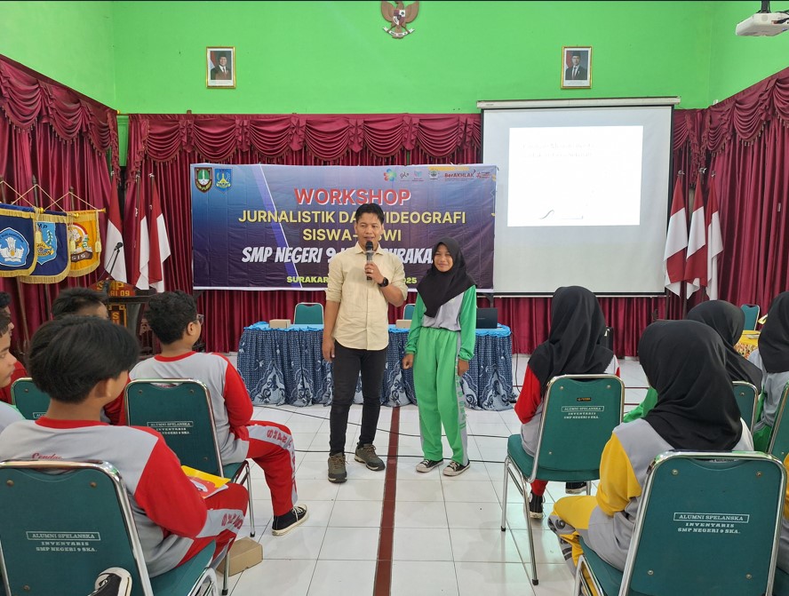 SMP Negeri 9 Kota Surakarta menggelar Workshop Jurnalistik dan Videografi dengan menggandeng Solopos Media Group pada Rabu-Jumat, (23-25/4/2025) yang diikuti oleh 120 peserta didik perwakilan dari kelas 7, 8 dan 9. Kegiatan workshop ini bertujuan untuk membantu peserta didik mengembangkan potensi, kemampuan literasi baik secara tulis maupun dalam pemanfaatan aplikasi media digital. Ada beberapa agenda kegiatan yang diselenggarakan, yaitu materi jurnalistik, materi videografi, membuat video pendek dan kunjungan ke kantor Solopos. Acara pada hari pertama dibuka langsung oleh Kepala SMP Negeri 9 Kota Surakarta, Siti Latifah, S.Pd., M.Pd. yang menyampaikan bahwa kegiatan workshop ini adalah kesempatan yang luar biasa bagi para peserta pilihan untuk dapat mengembangkan kemampuan literasinya dan menggali potensi dalam pembuatan konten digital. Mereka nantinya diharapkan dapat ikut andil dalam publikasi sekolah baik secara tulis ataupun digital. HARI KE-1 Pada hari pertama, peserta belajar bersama Damar Sri Prakoso dari Solopos Media Group yang membahas mengenai jurnalistik dan bagaimana cara menuliskan berita dengan baik. Damar menyampaikan bahwa dalam penulisan berita penulis harus mengedepankan fakta atau informasi yang sudah terbukti kebenarannya, tidak hanya berdasarkan apa yang tampak mata saja. Penulis juga tidak dapat menuangkan asumsi atau pendapat pribadi dalam menyampaikan berita. Damar menjelaskan teknik dalam menyampaikan informasi atau berita menggunakan teknik 5W1H (What, Who, When, Where, Why dan How) atau dalam Adik Simba (Apa, Di Mana, Kapan, Siapa, Mengapa dan Bagaimana). Setelah mendapatkan materi terkait jurnalistik, peserta diminta untuk menuliskan sebuah berita  berdasarkan indikator 5W1H dengan total 100 kata. Banyak peserta didik menuliskan berita tentang peluncuran Bank Sampah BERLIAN SMP Negeri 9 Kota Surakarta yang baru saja dilaksanakan pagi itu. Hasil tulisan peserta dikumpulkan kepada narasumber untuk kemudian dipili 10 karya terbaik. HARI KE-2 Workshop berlanjut pada hari kedua dengan topik bahasan videografi khususnya produksi konten video dengan narasumber Jafar Sodiq Assegaf selaku Manajer Produksi Video Solopos Media Group. Dalam paparannya, Jafar menjelaskan mengenai banyak poin, seperti format dan ragam video, tahapan pembuatan video, menyiapkan naskah hingga rumus premis dalam video. Peserta workshop kemudian dibagi menjadi 10 kelompok untuk diberi tugas membuat konten video singkat berdurasi dua menit yang berisikan informasi di lingkungan sekolah. Meski baru saja belajar, peserta antusias dan serius merekam video konten di berbagai area di sekolah. Setelah melalui proses editing dengan menerapkan teori yang sudah dipelajari, setiap kelompok mendapatkan review dan evaluasi dari Jafar sebagai bentuk perbaikan. “Video kami dinilai sudah baik, hanya pembukaan terlalu lama dan urutannya ada yang tertukar sedikit. Tapi, menurut Kak Jafar videonya sudah dapat dijadikan konten,” jelas Nabilah, salah satu peserta workshop. HARI KE-3 Berdasarkan hasil karya para peserta, terpilih dua puluh peserta terbaik yang berkesempatan untuk melakukan kunjungan ke kantor Solopos Media Group yang dipandu oleh Andro. Dalam kunjungan tersebut peserta diajak berkeliling di kantor Solopos, mulai dari masuk ke ruang rapat redaksi di mana sering dilakukan diskusi mengenai berita yang akan diterbitkan. Mereka juga berkesempatan masuk ke ruang siaran Radio Solopos 103 FM dan bahkan beberapa dari mereka beruntung untuk dapat melakukan siaran secara langsung (live) bersama penyiar Solopos pada pagi itu, yaitu Noer Atmaja. Peserta juga mengunjungi newsroom tempat di mana para redaktur dan designer bekerja hingga pada akhirnya mereka melihat proses produksi koran Solopos secara langsung di pabrik yang terletak di bagian belakang gedung. Kegiatan ini menjadi pengalaman berharga dan pembelajaran baru bagi peserta didik di bidang media. “Senang bisa main ke Solopos dan ke percetakannya. Sukses selalu, Solopos,” ungkap Nikeisha, peserta kunjungan di Solopos Media Group. Di tempat lain, 100 peserta didik yang dibagi ke dalam 10 kelompok melanjutkan kegiatan workshop di sekolah dengan membuat video singkat tentang 7 Kebiasaan Anak Indonesia Hebat. Beberapa dari mereka sudah merekam potongan video dari rumah dan kemudian melanjutkan pembuatan di sekolah. Ada pula yang merekam semua adegan di sekolah. Hasil editing video tersebut dikumpulkan ke pada panitia dan akan diberikan apresiasi ke tiga kelompok terbaik. Dengan mengikuti serangkaian kegiatan workshop ini, peserta diharapkan dapat meningkatkan kemampuan literasi, penggunaan aplikasi digital dan menjadi garda terdepan dalam mendukung publikasi sekolah. (Awp)