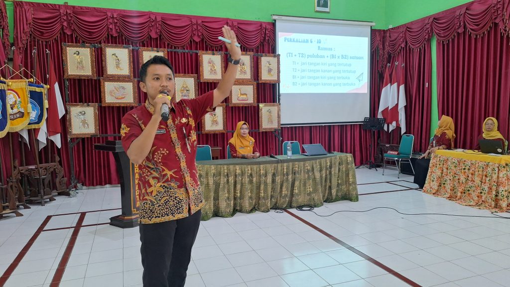 Komunitas Belajar SekarJagad Belajar SMP Negeri 9 Kota Surakarta mengadakan kegiatan rutin berbagi praktik baik di aula pada Kamis, (20/2/2025). Kegiatan ini diikuti oleh seluruh guru dengan pengisi materi dari kombel mata pelajaran matematika yang diwakili oleh Angga Kartika Candra, S.Pd. Sebelum materi inti disampaikan, Kepala SMP Negeri 9 Surakarta, Siti Latifah, S.Pd., M.Pd., menyampaikan motivasinya terkait kegiatan berbagi praktik baik. Dirinya berharap agar seluruh bapak/ibu guru dapat belajar hal-hal baru meskipun setiap guru memiliki gaya mengajar yang berbeda-beda. Para guru diminta untuk dapat mengambil ilmu-ilmu yang nantinya dapat diterapkan di kelas masing-masing meskipun berbeda mata pelajaran. Praktik baik yang dibagikan adalah Jarimatika atau trik berhitung perkalian menggunakan jari tangan. Angga menyampaikan materi perkalian mulai dari satuan, belasan hingga puluhan. Trik dasar dari jarimatika adalah dengan melakukan penghitungan jari tangan yang terbuka dan terutup. Para guru tampak antusias mengikuti materi dan mencoba mempraktikkannya secara langsung. Pada paparannya, Angga menyampaikan bahwa teknik berhitung ini dapat menjadi alternatif bagi peserta didik dalam operasi perkalian, selain teknik perkalian bersusun dan sempoa. Jarimatika juga dapat membantu para orang tua yang ingin mengajarkan perkalian untuk anak-anak. (Awp)