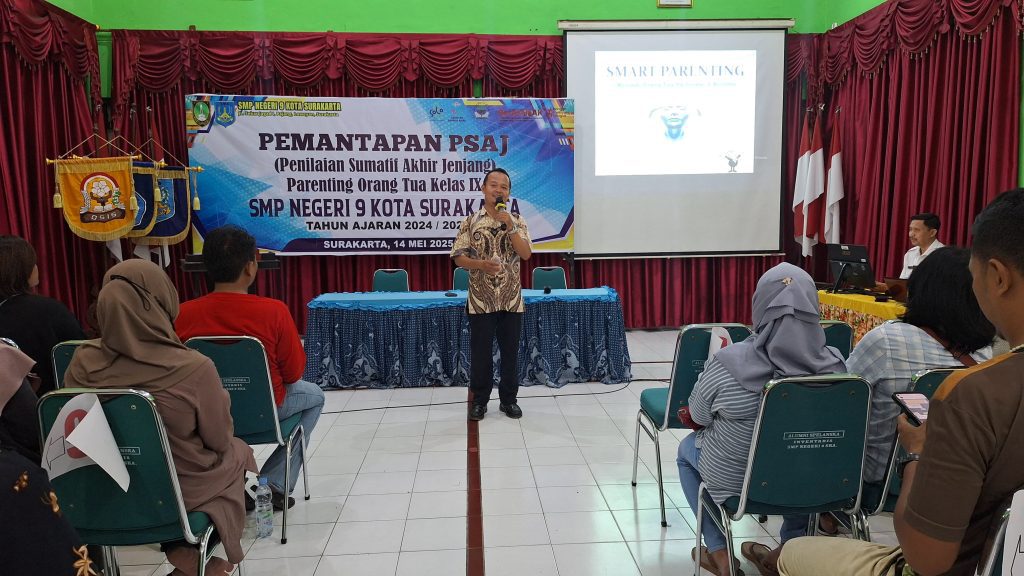 SMP Negeri 9 Kota Surakarta menggelar tindak lanjut kegiatan Refleksi dan Evaluasi Akhir Tahun 2025 dan koordinasi hari pertama masuk sekolah semester genap Tahun Pelajaran 2025/2026 pada Jumat (2/1/2026) di aula sekolah. Kegiatan ini diikuti oleh seluruh guru, tenaga kependidikan dan dipimpin langsung oleh Kepala SMP Negeri 9 Kota Surakarta, Siti Latifah, S.Pd., M.Pd. Kegiatan diawali dengan melakukan review pada kegiatan evaluasi dan refleksi di Sekipan, Tawangmangu. Berdasarkan hasil yang telah dikirimkan para guru dan tendik, didapatkan kesimpulkan untuk kegiatan tersebut diadakan kembali di tahun berikutnya untuk mempererat silaturahmi dan kekompakan. Para guru juga memberikan evaluasi, saran dan masukan agar kegiatan berikutnya lebih baik lagi. Melalui diskusi yang dibuka, beberapa guru juga mengusulkan untuk kegiatan tersebut dilakukan satu hari penuh dengan memanfaatkan waktu lebih optimal, tanpa mengurangi esensi dari refleksi itu sendiri. Setelahnya, diberkan arahan dan motivasi dari kepala sekolah untuk memberikan semangat pada seluruh guru dan tendik menyambut semester genap yang dimulai pada Senin, (5/1/2026). Pada kesempatan tersebut beliau juga mensosialisasikan jargon baru yang dibuat dari kata Sekar Jagad, alamat dan branding SMP Negeri 9 Kota Surakarta. “Singkatan jargon ini saya sesuaikan dengan branding Spelanska yaitu Sekar Jagad yang mana kepanjangannya adalah SEmangat berKARya JAga integritas Spelanska hebAT.” Sebelum sesi ditutup, kepala sekolah memimpin para guru dan tendik untuk menyuarakan jargon baru SMP Negeri 9 Kota Surakarta. (Awp)