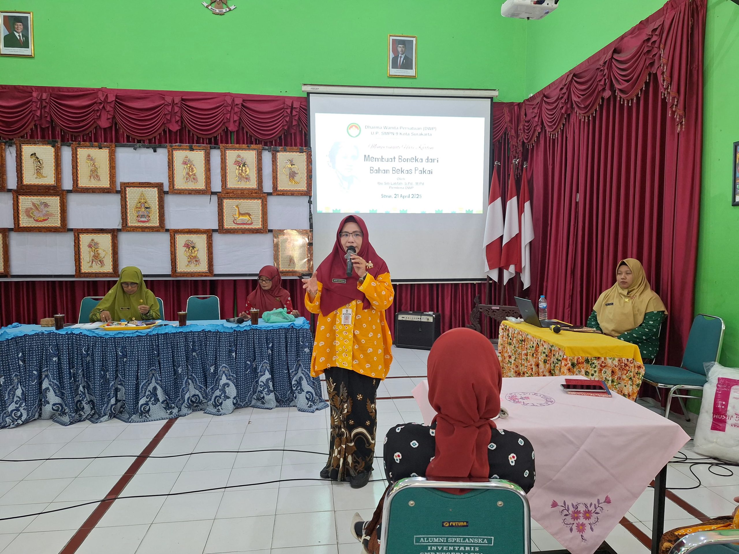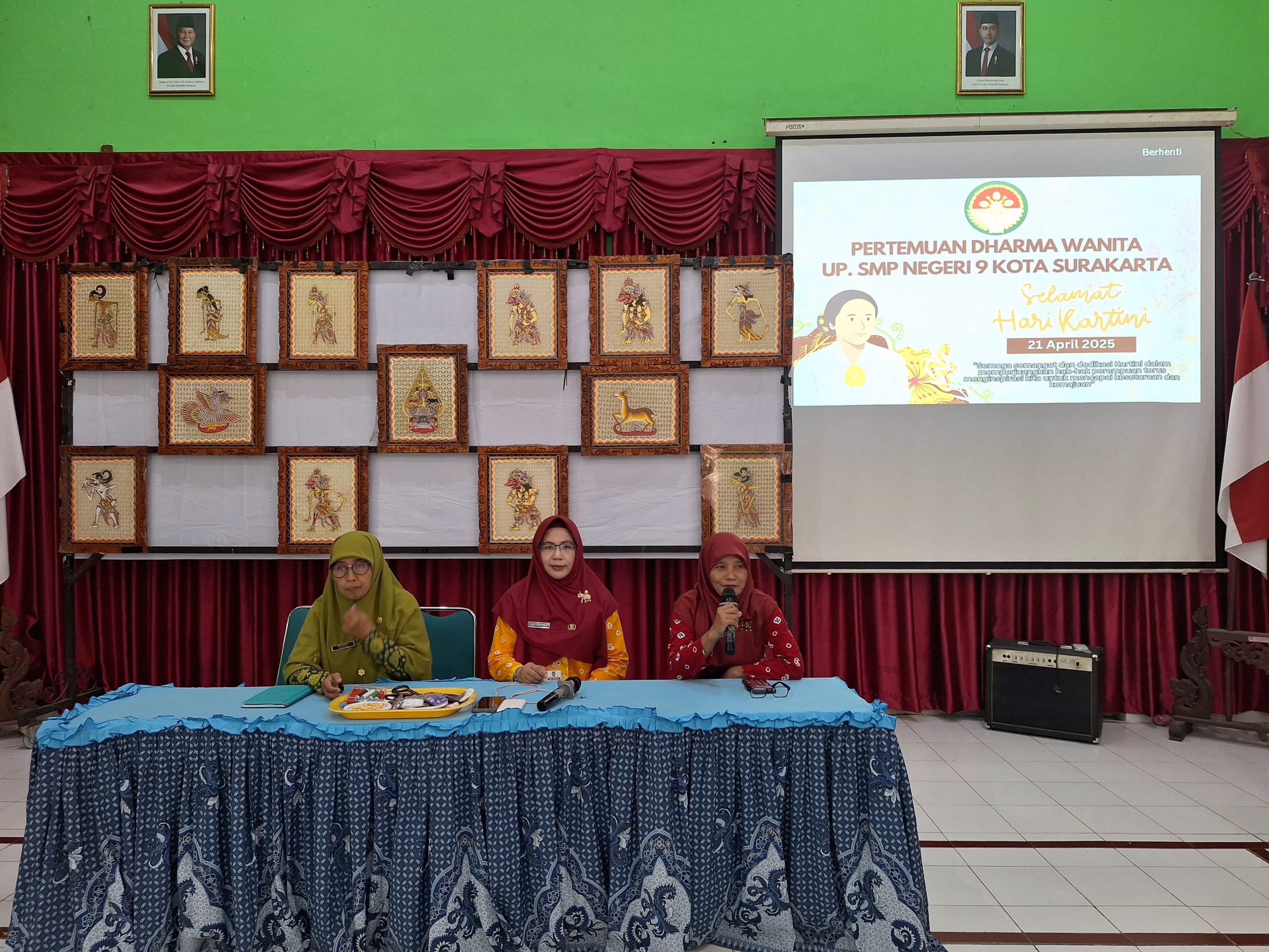 Anggota Dharma Wanita Persatuan Unit Pelaksana (UP) SMP Negeri 9 Kota Surakarta mengadakan pertemuan rutin pada Senin, (21/4/2025) di aula sekolah, bertepatan dengan perayaan Hari Kartini tahun 2025. Pertemuan tersebut dihadiri oleh Pembina Dharma Wanita Persatuan UP SMP Negeri 9 Kota Surakarta, Siti Latifah, S.Pd., M.Pd. dan seluruh anggota aktif dan pasif.