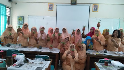 | Dharma Wanita SMP Negeri 9 Surakarta membuat tanaman kokedama |