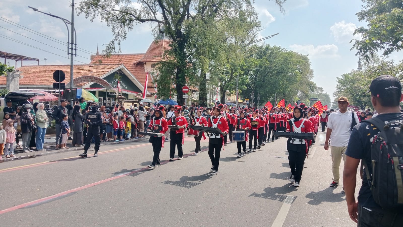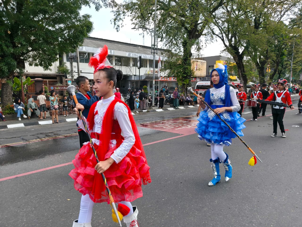 Penampilan yang dimulai pukul 13.00 WIB ini sukses menarik perhatian penonton yang memadati Jalan Slamet Riyadi. Para anggota drumband dengan seragam berwarna merah hitam menampilkan berbagai formasi dan aransemen musik yang rancak, membuat suasana semakin hidup. Tepuk tangan riuh terus mengiringi setiap gerakan dan pukulan stik yang kompak dari para murid.