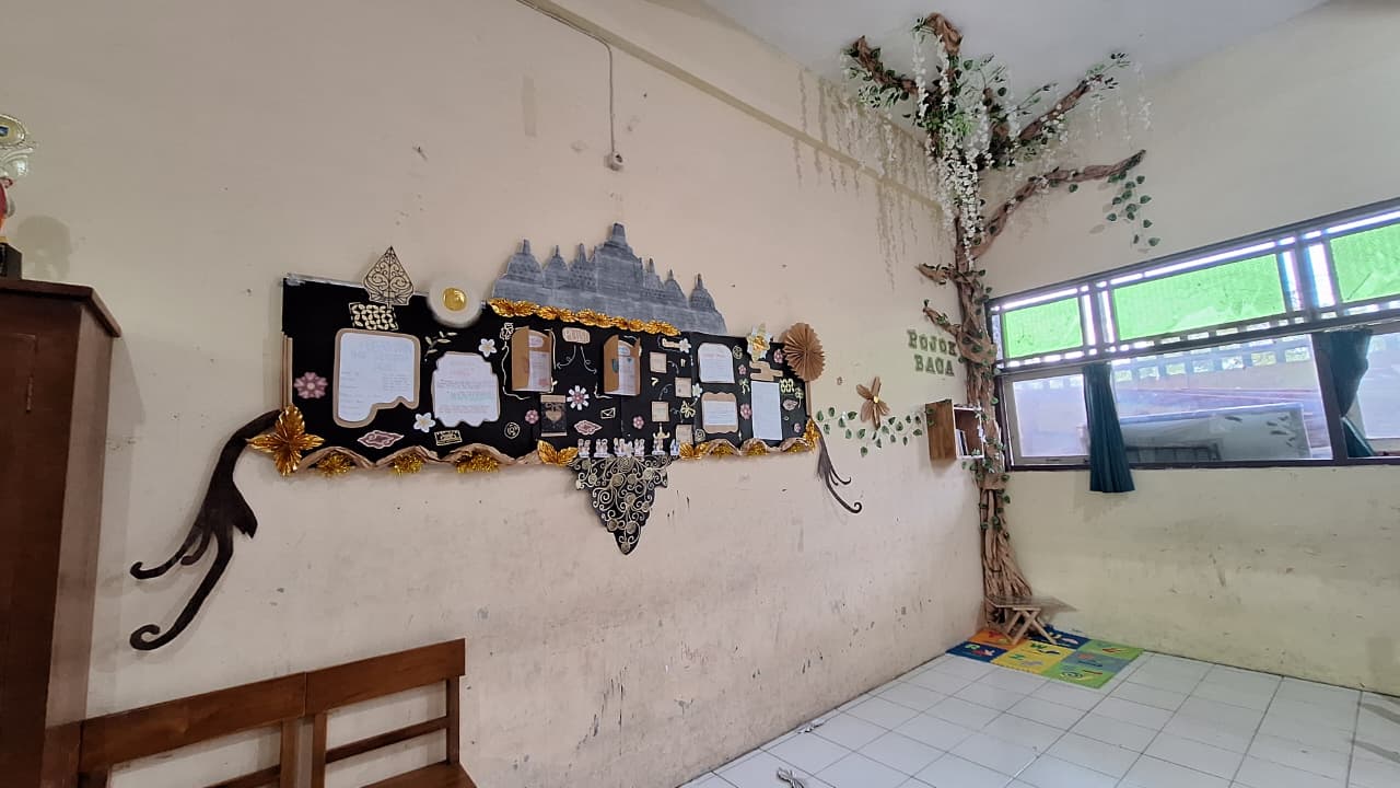Karya mading dan pojok baca kelas VIII F.