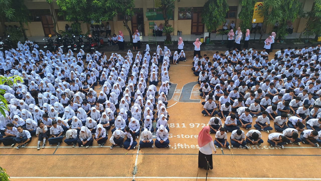 Seluruh murid kelas VII, VIII dan IX mengikuti pembukaan dan pengarahan sebelum kegiatan kokurikuler Lomba Bulan Bahasa dimulai, Rabu (22/10/2025) di halaman sekolah.