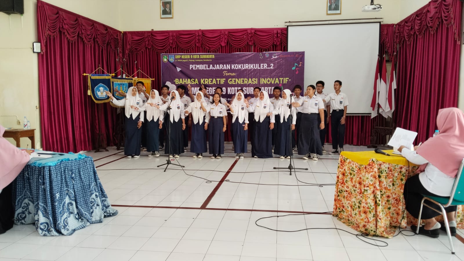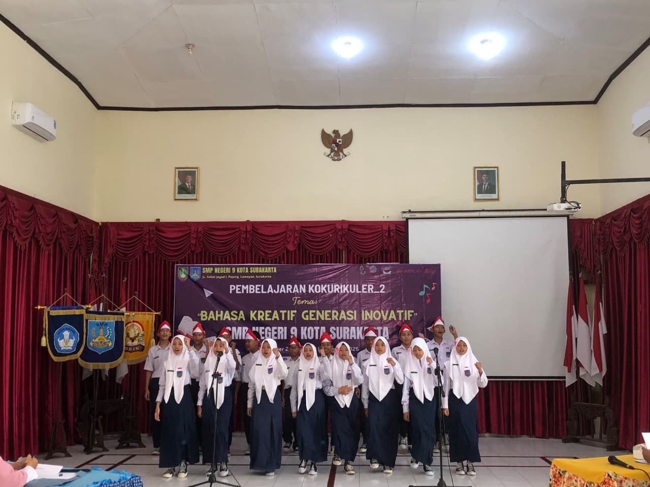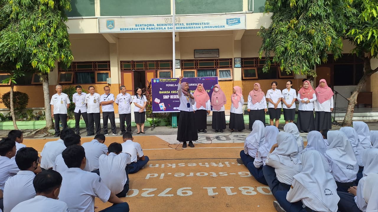 Kepala SMP Negeri 9 Kota Surakarta, Siti Latifah, S.Pd., M.Pd. membuka kegiatan kokurikuler Bulan Bahasa, Rabu (22/10/2025).