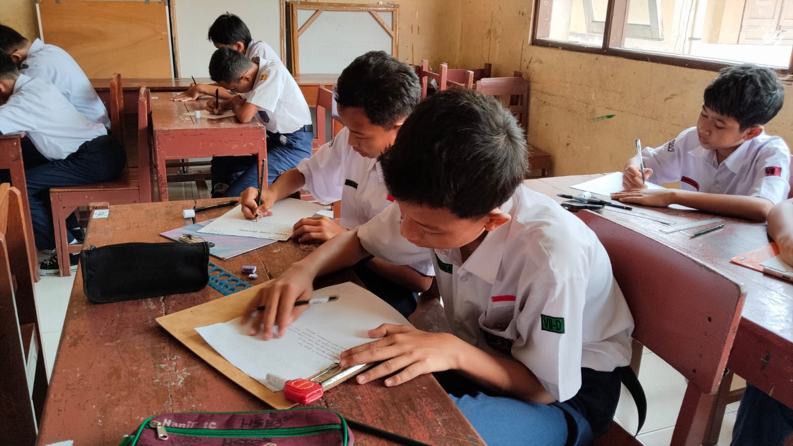 Pelaksaan lomba menulis puisi didampingi juri, Teguh Widada, S.Pd.
