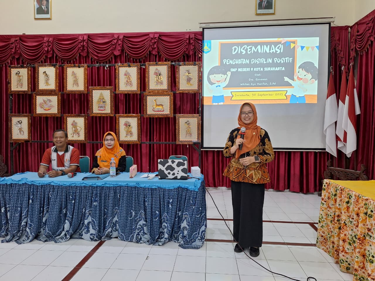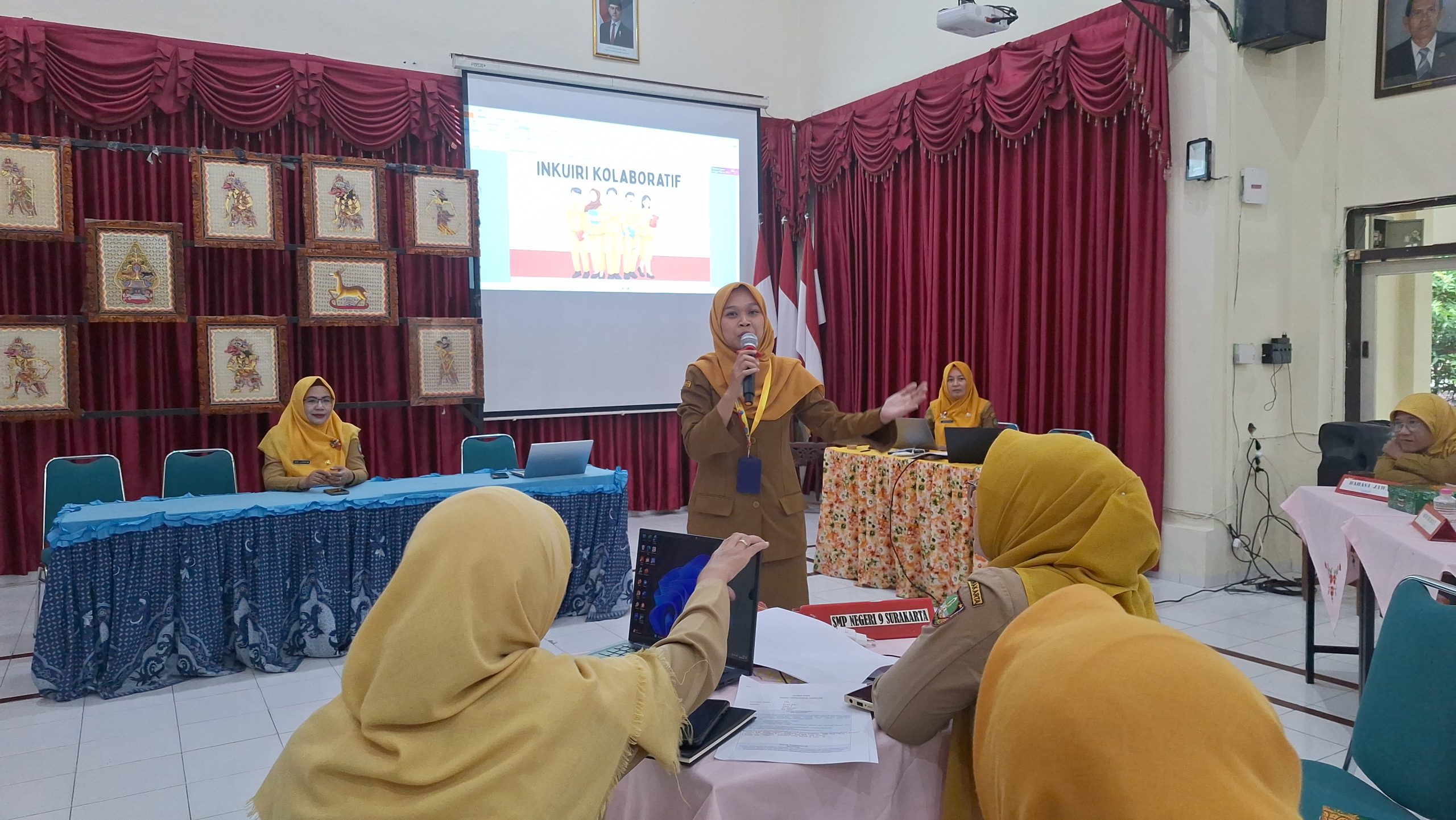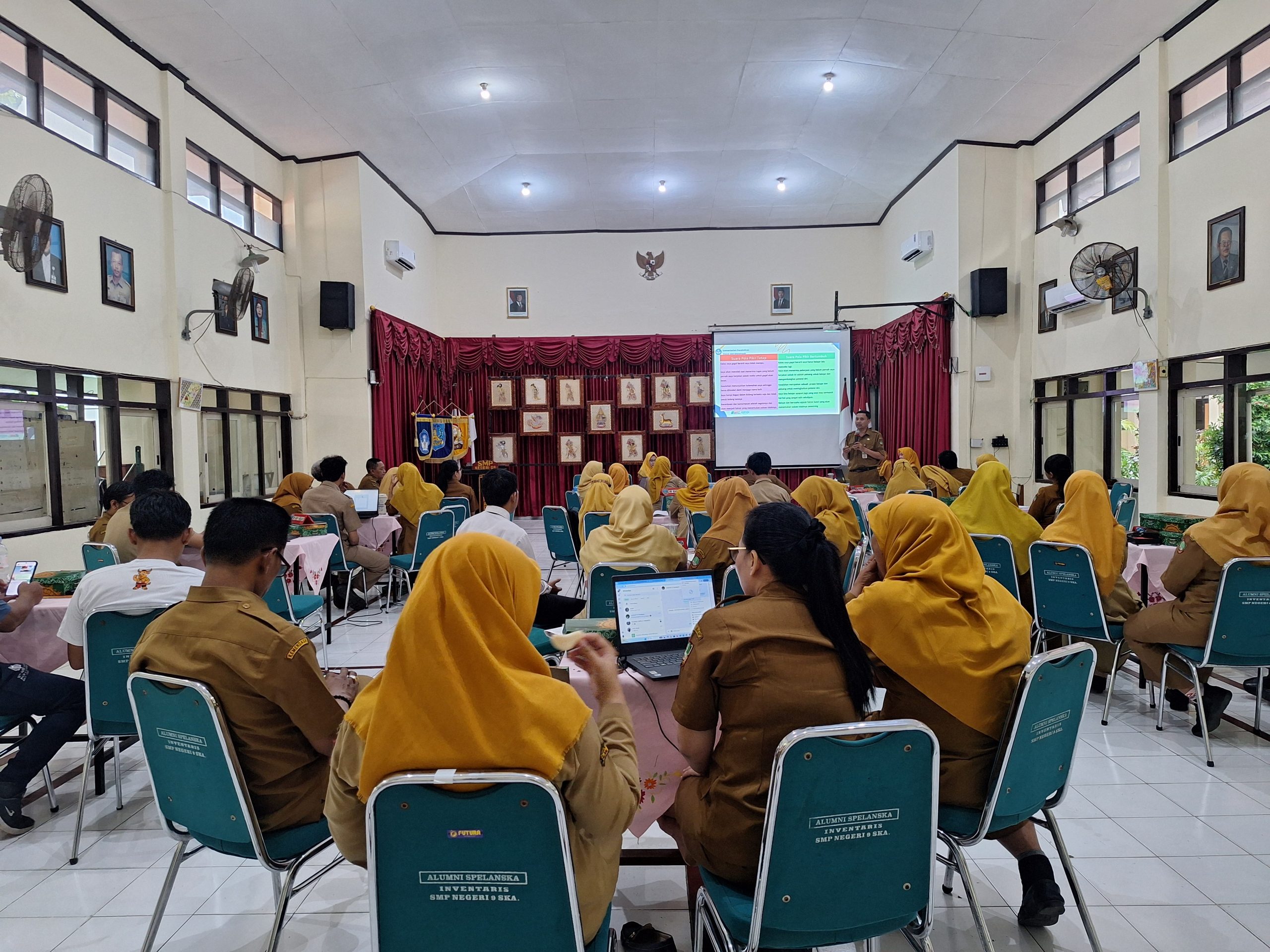 SMP Negeri 9 Kota Surakarta menyelenggarakan kegiatan pengimbasan pasca diklat pada Senin dan Selasa (29-30/10/2025) di aula yang dibagi menjadi Pengimbasan Pembelajaran Mendalam oleh tiga guru, Nur Dawam S.Pd., Banati Rahmawati, M.Si dan Anggraini W.P., S.Pd., dan Pengimbasan Penguatan Disiplin Positif oleh Drs. Gunawan dan Whikan Ayu Hanifah, S.Pd. Kegiatan tersebut diikuti oleh seluruh guru dan tenaga kependidikan.