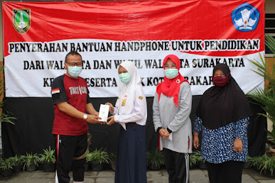 | Penyerahan bantuan HP oleh Wali Kota dan Wakil Wali Kota Surakarta, Jumat (23/10/2020) di SMP Negeri 9 Surakarta |