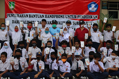 Wali Kota Surakarta, F.X. Hadi Rudyatmo dan Wakil Wali Kota Surakarta, Achmad Purnomo menyerahkan bantuan HP kepada 50 siswa-siswi dari SMP Negeri dan Swasta Se-Surakarta, Jumat pagi (23/10/2020) di SMP Negeri 9 Surakarta. Penyerahan bantuan HP menjadi salah satu agenda rutin dalam rangkaian kegiatan Mider Praja selama masa pandemi COVID-19. Dalam penyerahan bantuan ke-9 tersebut, Pemerintah Kota Surakarta telah memberikan ponsel sebanyak 606 kepada peserta didik.