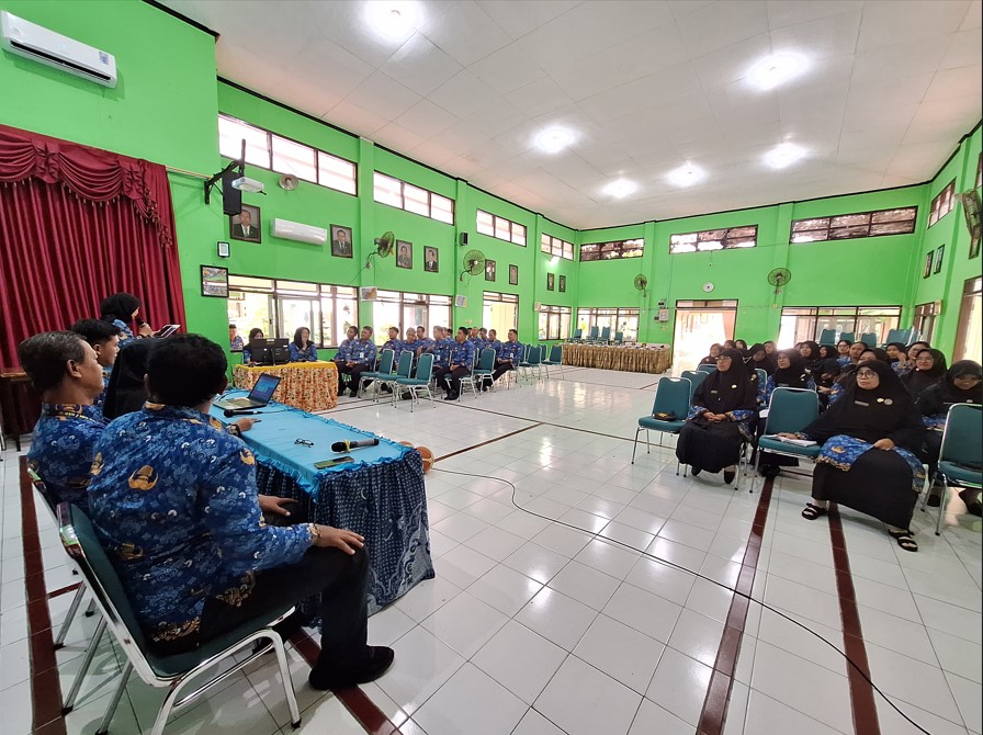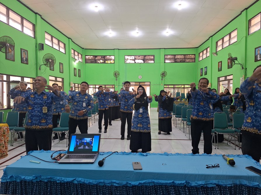 Seluruh guru didampingi Kepala SMP Negeri 9 Kota Surakarta, Siti Latifah, S.Pd., M.Pd. mengikuti kegiatan rutin Kombel (Komunitas Belajar) SekarJagad Belajar SMP Negeri 9 Kota Surakarta di aula sekolah pada Kamis, (17/4/2025). Setelah para guru IPS melakukan berbagi praktik baik pada pertemuan sebelumnya, kini giliran para guru dari mata pelajaran PJOK (Pendidikan Jasmani, Olahraga dan Kesehatan) yang terdiri dari Drs. Gunawan, Basuki Tri Hartoto, S.Pd. dan Bukhori Romadhon, S.Pd, untuk membagikan pengalaman dalam pembelajaran olahraga.