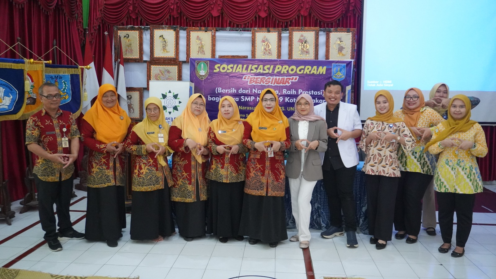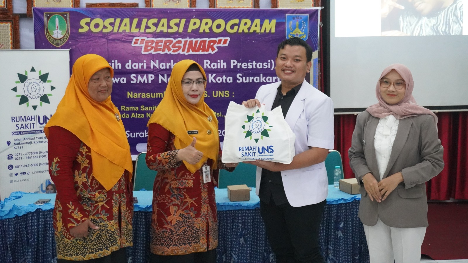 Kepala Sekolah dan Guru SMP Negeri 9 Kota Surakarta beserta Tim dari RS UNS dalam Sosialisasi Program Bersinar (Bebas Narkoba Raih Prestasi).